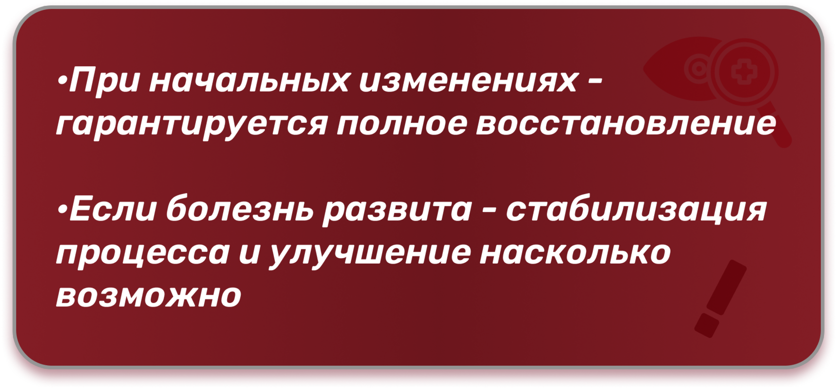 Результат зависит от давности заболевания, возраста пациента и сопутствующих заболеваний.